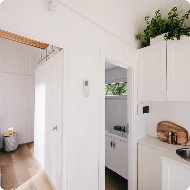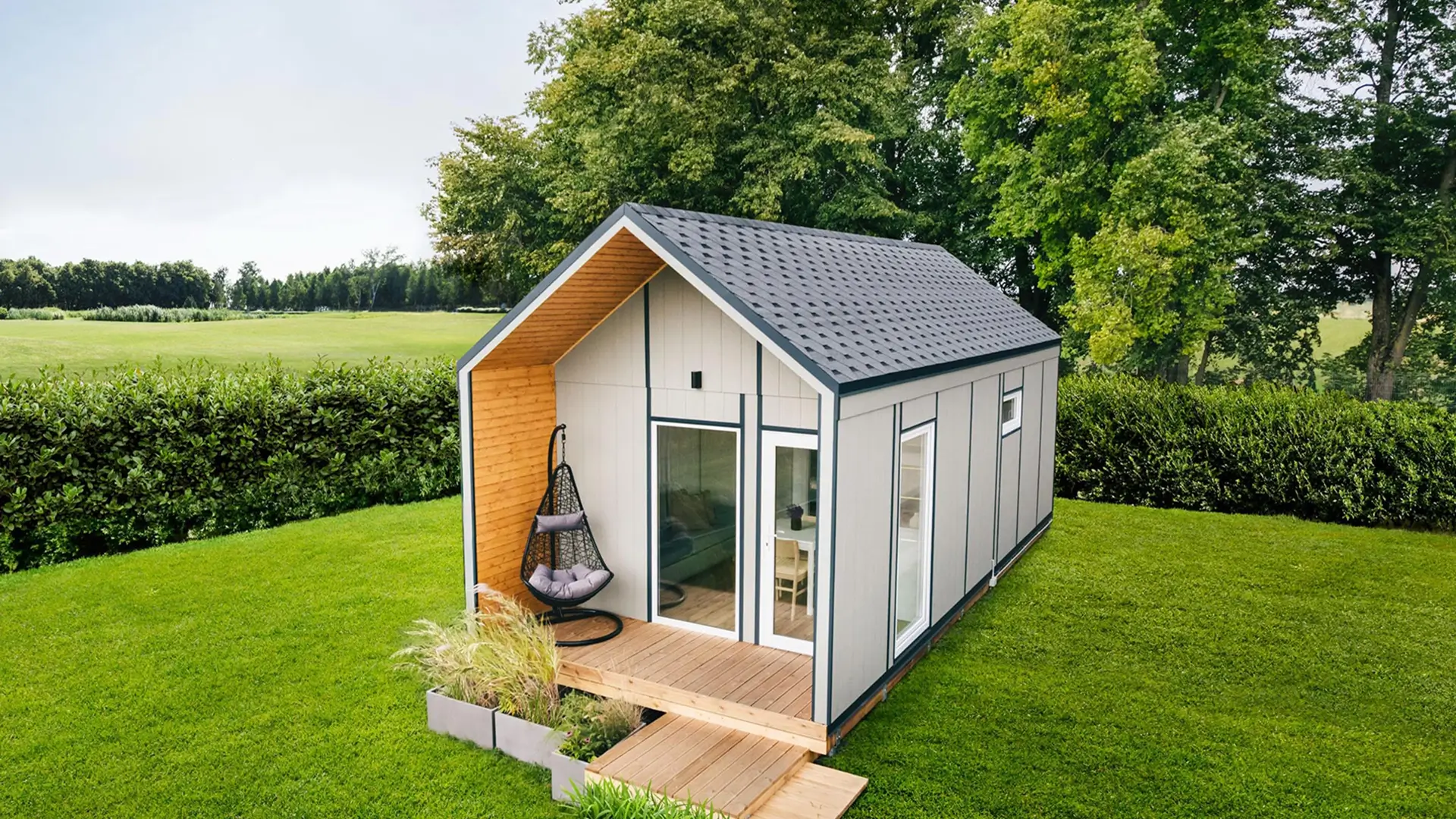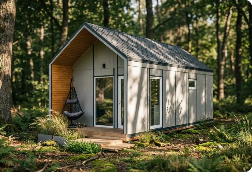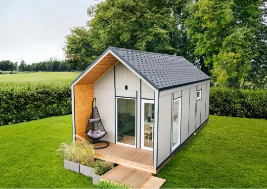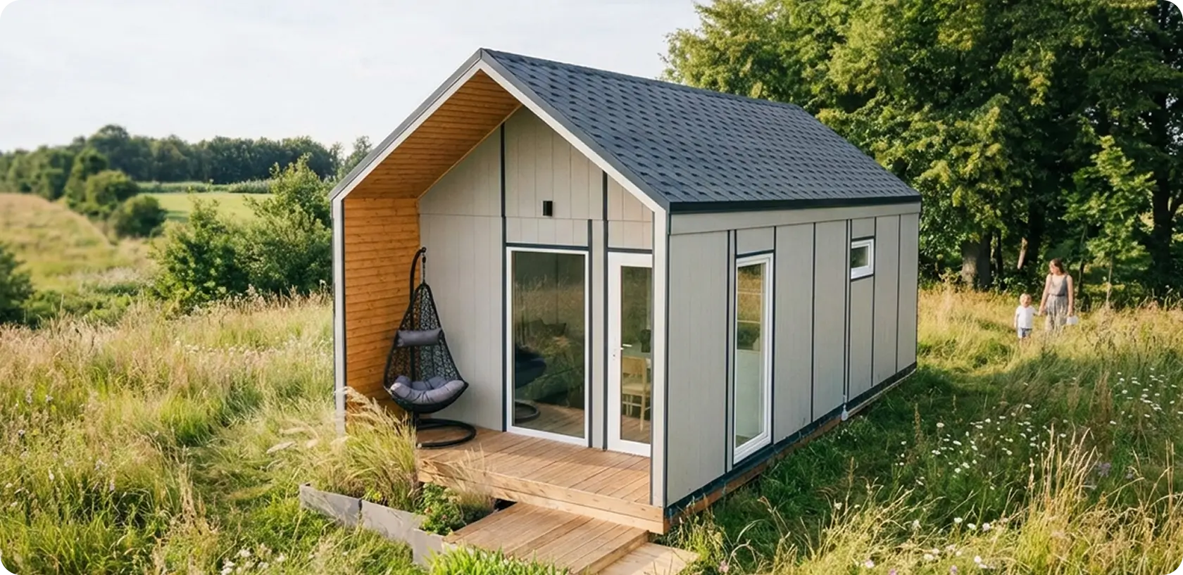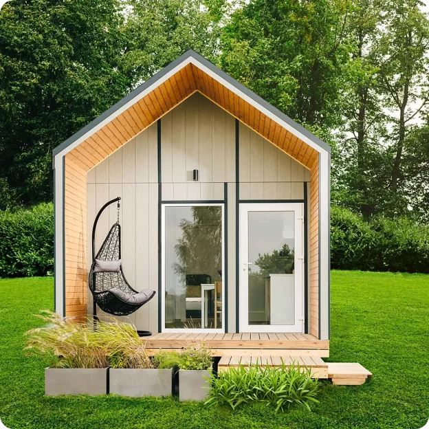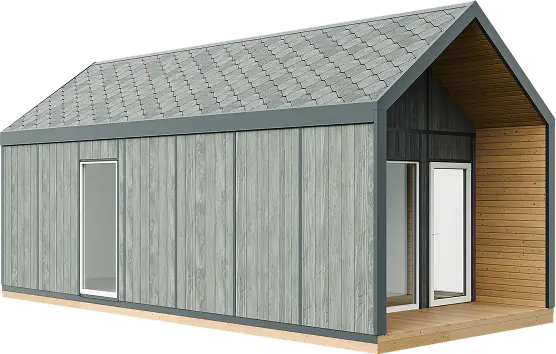 Pilna komplektacija reiškia, kad namelis pristatomas paruoštas naudoti su visomis pagrindinėmis erdvėmis ir komunikacijomis. Viskas apgalvota iš anksto, be papildomų darbų ar rangovų.