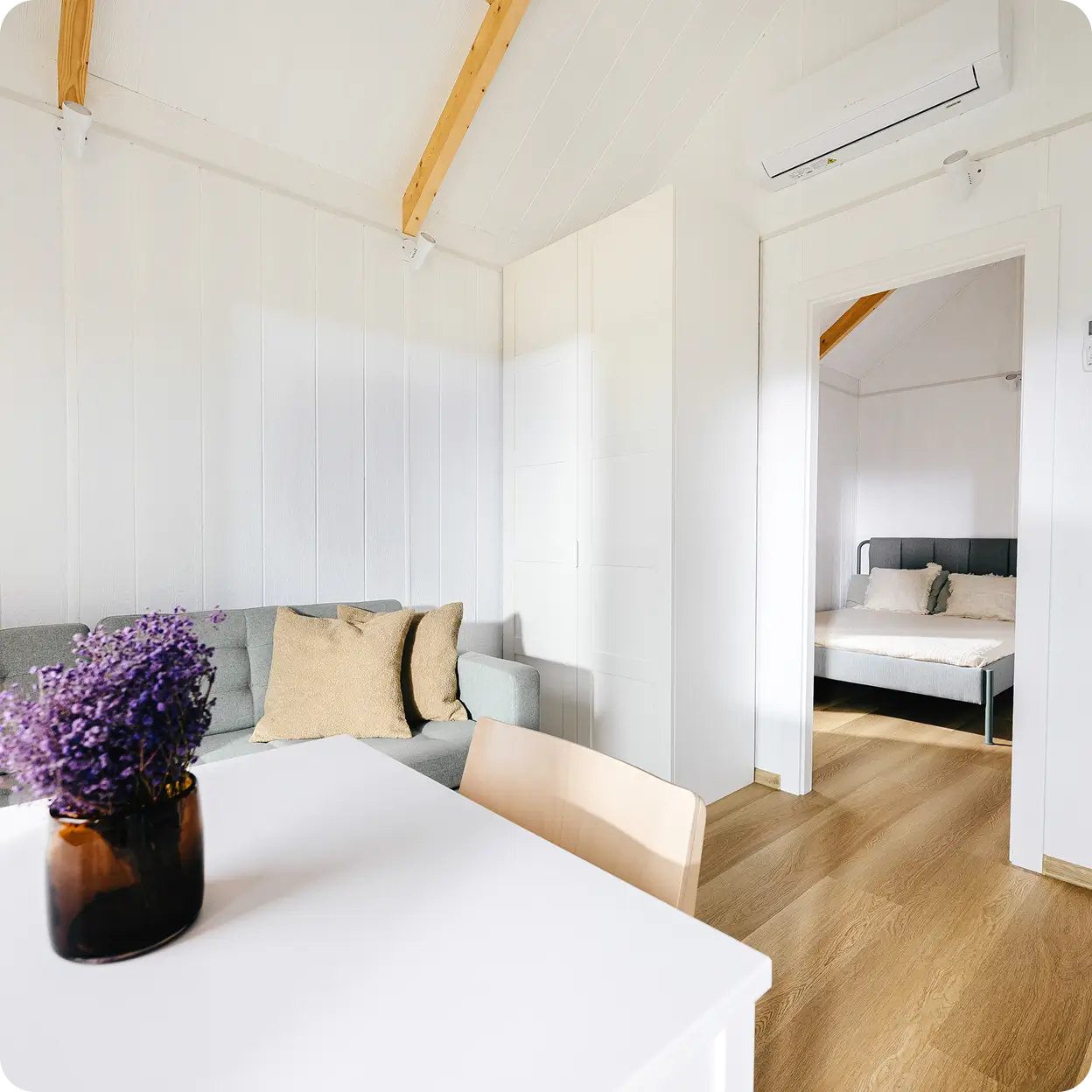 Atvykite apžiūrėti pastatyto namelio, įvertinkite erdvę, apdailą ir sprendimus realybėje. Mielai atsakysime į klausimus ir padėsime suprasti, ar šis sprendimas tinka jūsų poreikiams.